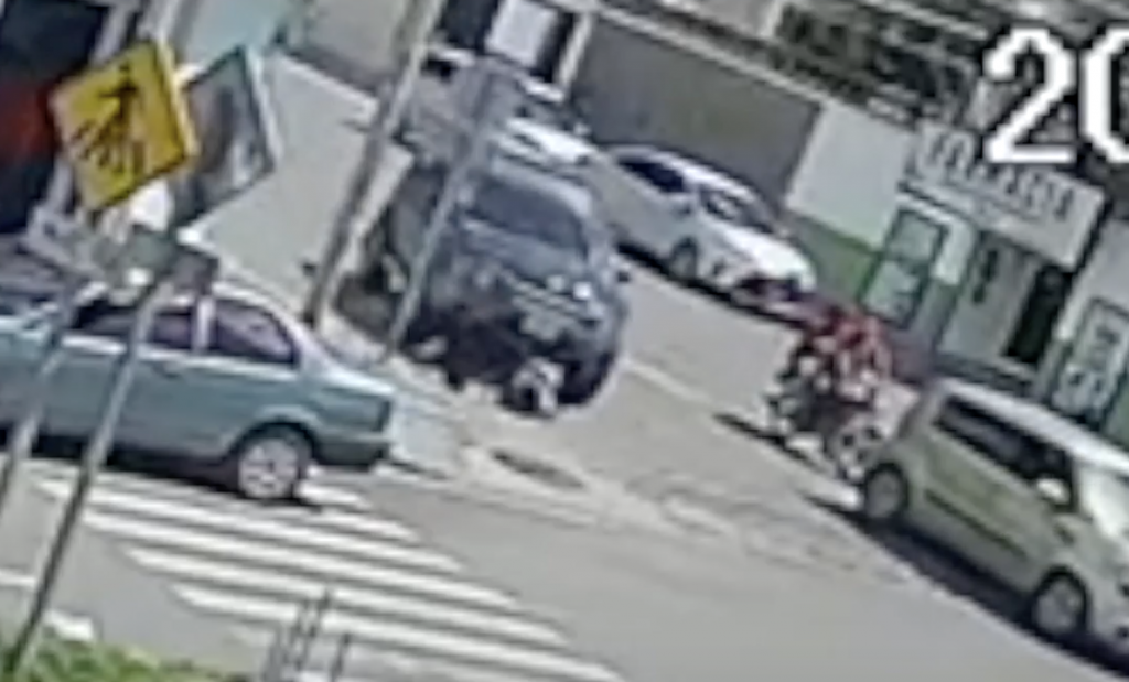 Una nueva modalidad están utilizando los dueños de lo ajeno para asaltar en el trafico de la ciudad de Quetzaltenango, en el video de una cámara de seguridad capta el momento exacto que un vehículo atropella a un ciclista.