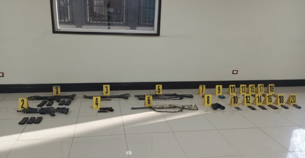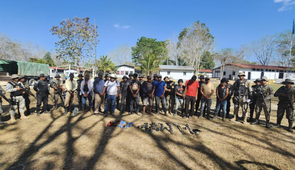 Autoridades informaron sobre la detención en flagrancia de 12 personas, la incautación de 6 armas de fuego, un vehículo y radiocomunicadores en Petén, esto tras un operativo para fortalecer el control del parque nacional Sierra del Lacandón, Las Cruces, Petén.