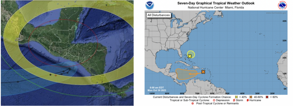 Así mismo se monitorea la actividad ciclónica del mar Caribe, la cual hasta el momento no representa peligro para Guatemala. Sin embargo, no se descarta que se puedan presentar ciclones tropicales hacia final de la semana.