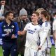 Hwang Hee-chan y Hwang In-beom de Corea del Sur celebran después del partido cuando Corea del Sur se clasifica para las etapas eliminatorias REUTERS/Kai Pfaffenbach