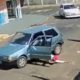Imágenes de cámaras de seguridad muestran el momento en que un conductor cae de su propio auto en movimiento.