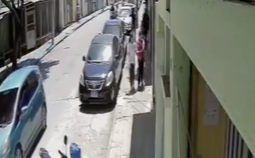 Una cámara de vigilancia grabó el momento en que una mujer que caminaba por un sector de la zona 1 capitalina, fue víctima de un asalto...