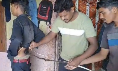 El joven tiene un mechón de cabello que crece desde la parte inferior de la espalda y se extiende hacia afuera como si se tratara de...