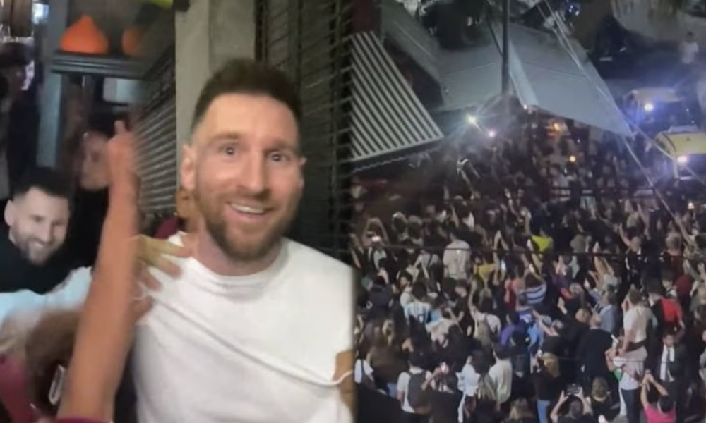 Cientos de fanáticos de Argentina se aglomeraron en la entrada de un famoso restaurant de Buenos Aires, Argentina para ver al astro Lionel Messi, quien visitó el país para...