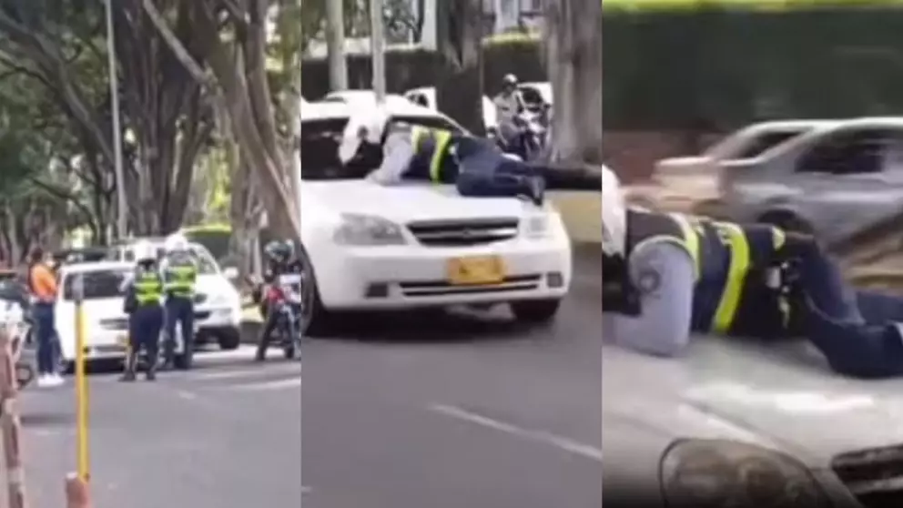Un acto de intolerancia vial ocurrió en Cali, Colombia cuando un conductor embistió y arrastró sobre el cofre de su vehículo a un agente de tránsito...