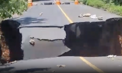 Un video compartido en redes sociales, se puede observar el momento exacto cuando colapsa la carretera que conduce hacia la aldea “La Avellana”, Ruta a Monterrico,...
