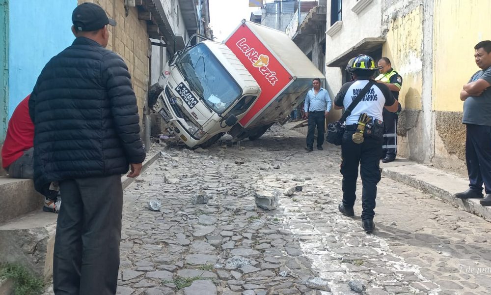 En un incidente de tráfico en la 2ª calle de la zona 4 de Sumpango, Sacatepéquez, un camión estacionado se desconectó y comenzó a rodar cuesta...