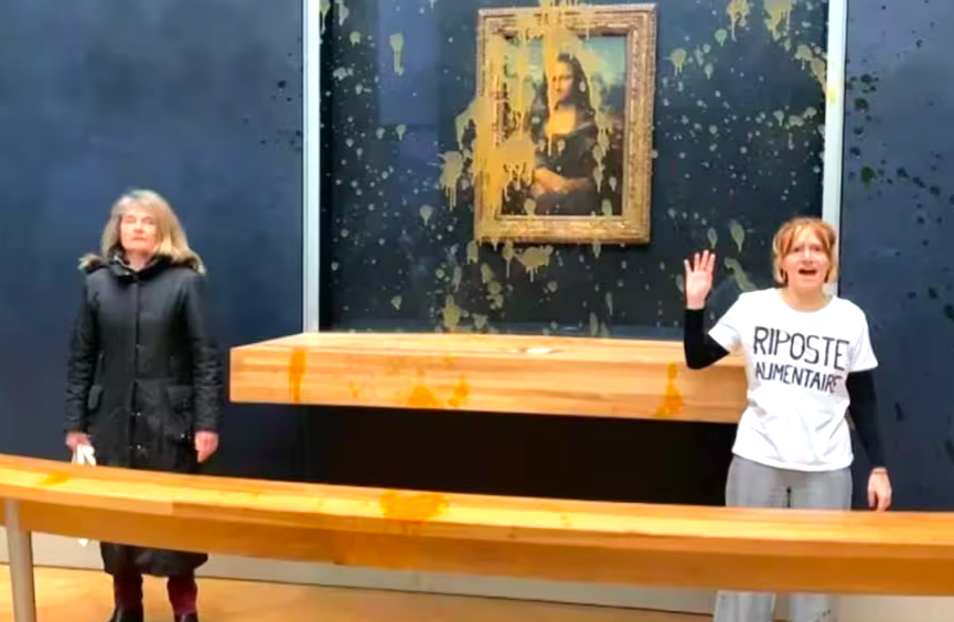 Video: Activistas climáticas arrojan sopa a ‘La Mona Lisa’ del Louvre