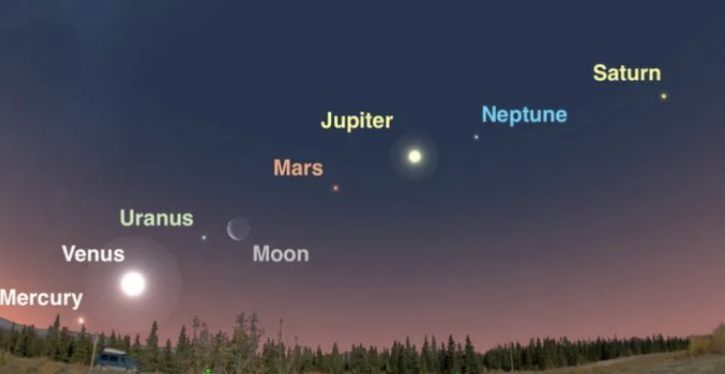 10 de agosto de 2025: Mercurio, Júpiter, Venus, Urano, Neptuno y Saturno formarán una alineación aún más extensa, visible en varias partes del mundo.